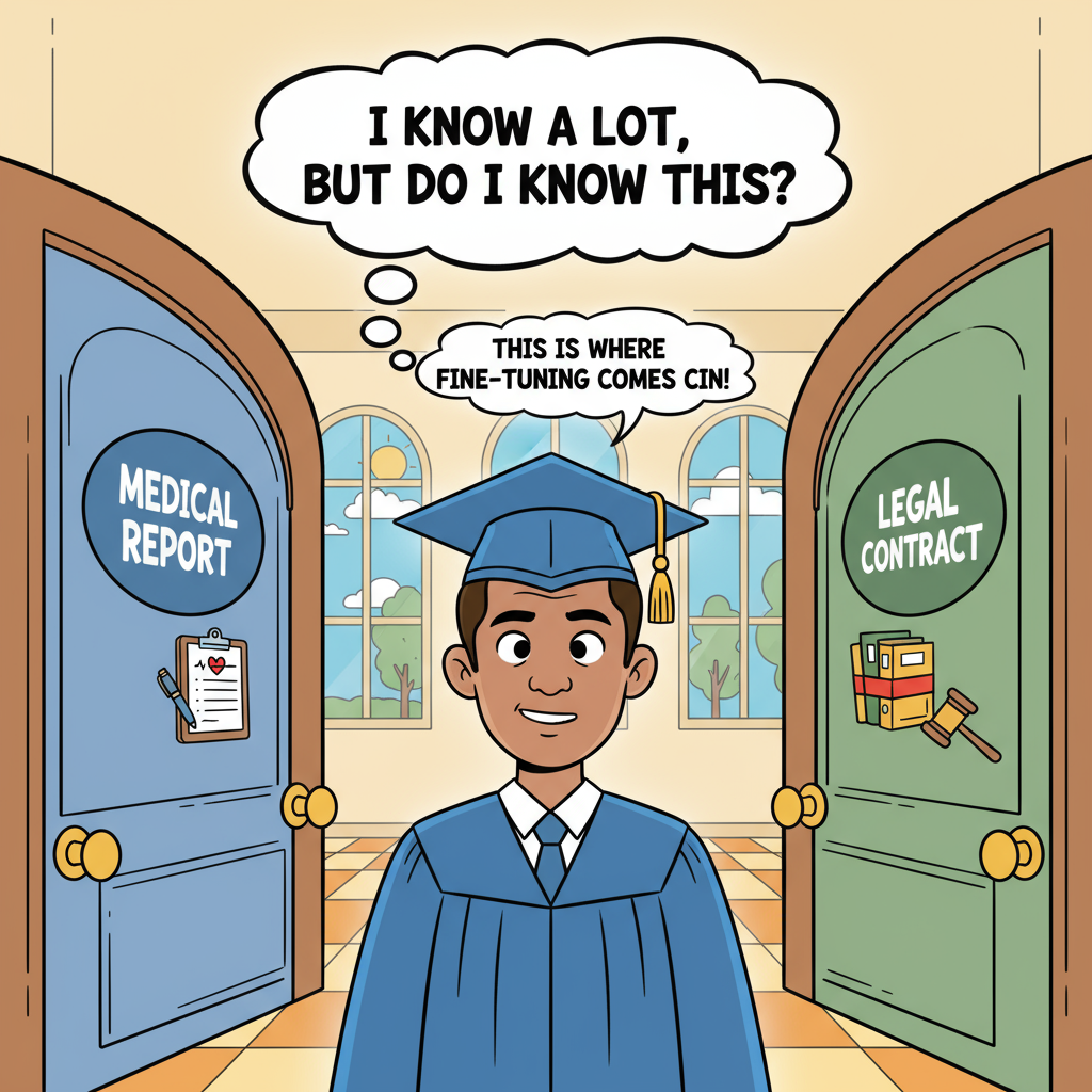 Think of a pre-trained LLM as a brilliant university graduate with broad knowledge but lacking industry-specific expertise. Sure, they understand language patterns and can hold conversations on various topics, but ask them to analyze a medical report or draft a legal contract, and they might falter. This gap between general capability and specialized performance is where fine-tuning becomes invaluable.