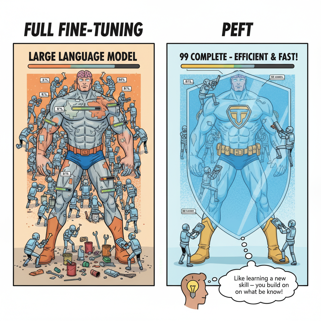 This is where Parameter-Efficient Fine-Tuning (PEFT) methods come into play, fundamentally changing how we adapt these massive models. PEFT techniques recognize that we don’t need to modify everything to achieve specialization. Instead, we can strategically update a tiny fraction of the model’s parameters while keeping the rest frozen.
